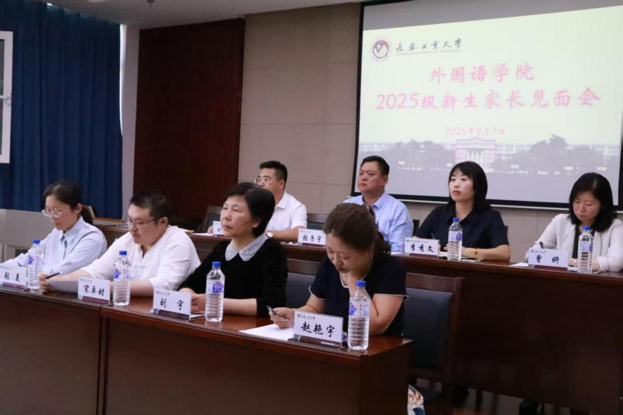 在435多功能报告厅召开2025级新生家长见面会。学院党委书记张子宇、院长李秀文、党委副书记刘凤利、副院长曾妍、英语系主任刘宇、英语系副主任赵艳宇、日语系主任宋卓时、俄语系主任张美、学院专职组织员(新生辅导员)谭密参加见面会。本次会议由刘凤利主持。