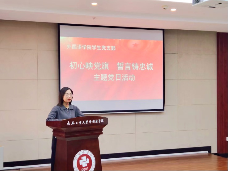 学生党支部于11月12日在学院多功能报告厅开展“初心映党旗,誓言铸忠诚”主题党日活动。本次活动由学院专职组织员、学生党支部书记谭密同志主持,学生党支部全体党员积极参加。