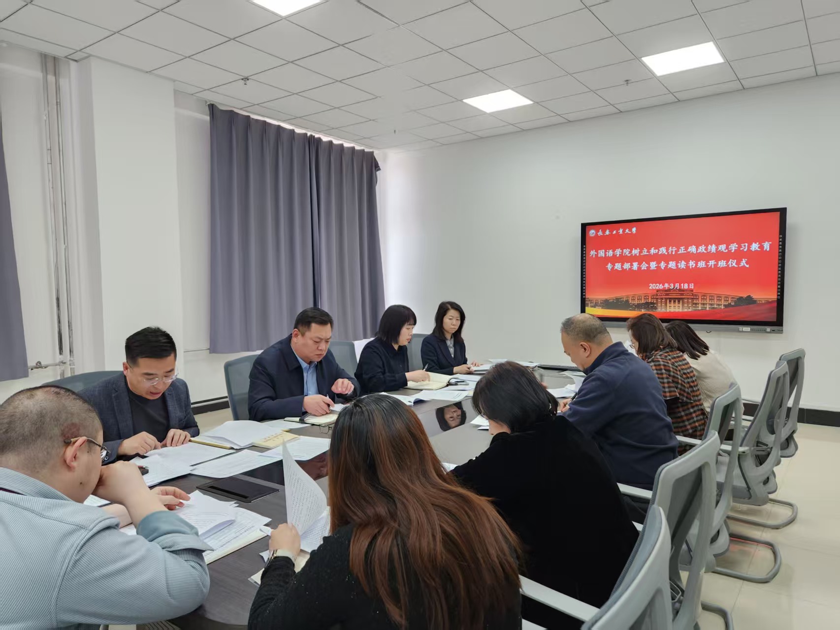 学院党委书记张子宇对学院树立和践行正确政绩观学习教育工作作全面部署讲话,并对专题读书班学习提出明确要求:一是要强化理论武装,筑牢思想根基,静下心来读原著、学原文、悟原理,将正确政绩观融入外语教学、科研和社会服务各环节;二是要聚焦核心任务,践行育人使命,用心用情解决师生急难愁盼问题,多做打基础、利长远、惠师生的实事;三是要坚持问题导向,狠抓整改提升,全面查摆短板不足,建立问题清单、责任清单、整改清单,明确整改举措和时限;四是要健全长效机制,巩固学习成果,将学习教育中的好经验、好做法固化为制度规范,完善师资队伍培养机制,为学院高质量发展提供坚实保障。
